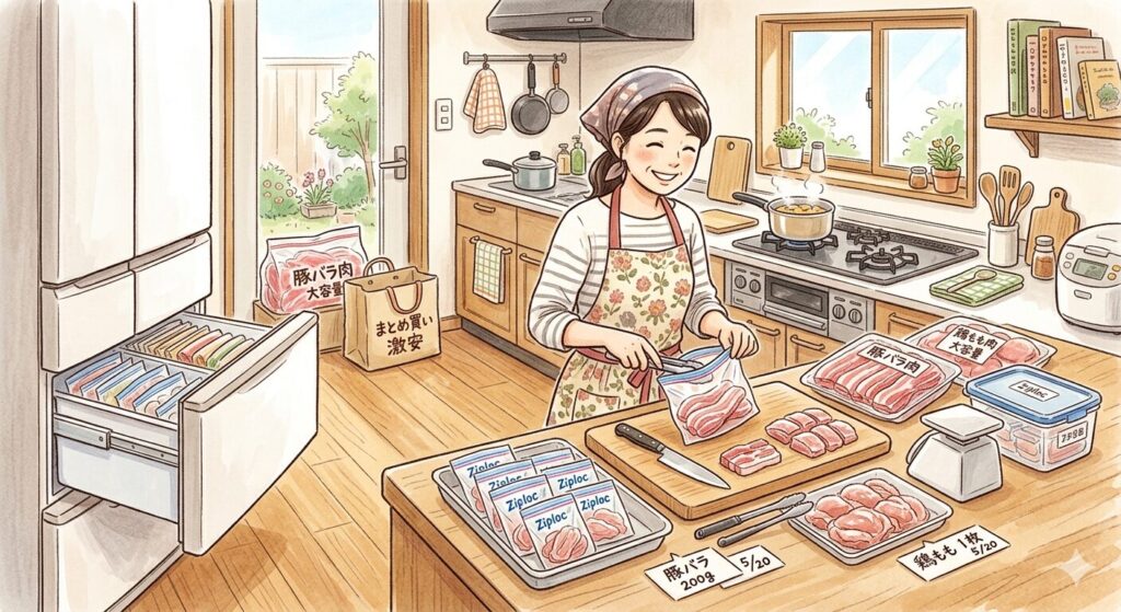 ①月に1回、お肉・魚をまとめ買いして小分け冷凍する